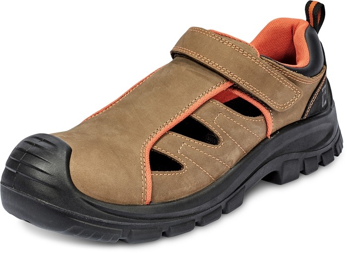 Biztonsági fémmentes szandálműanyag lábujjvédővel és textil talpátszúrás elleni védelemmel, kétrétegű PU/PU talppal. A felső rész kiváló minőségű nubuk bőr.