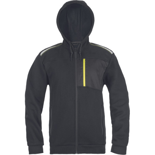 Leírás: Férfi cipzáras kapucnis kardigán • 2 oldalzseb • 1 mellzseb cipzárral • megerősített vállrészek fényvisszavető csíkokkal • rugalmas derékpánt és mandzsetta