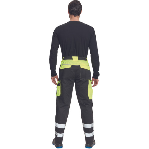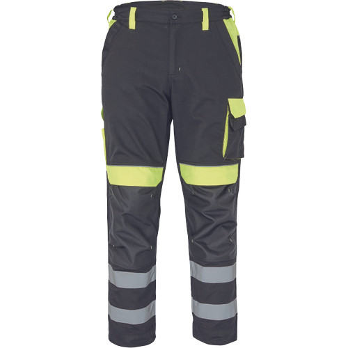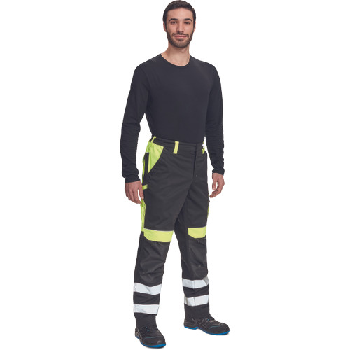Leírás: férfi munkanadrág rugalmas derékkal, meghosszabítható szárakkal • 1 nagy mellzsebbel, 2 első zsebbel, a bal száron 1 dupla zsebbel • a jobb száron 2 kisebb hátsó zsebbel, hátul 2 zsebbel készül • az alsó szárakon két rávarrt fényvisszavető csíkkal van ellátva • megerősített térdrész és térdzseb Oxford 600D anyagból térdvédő behelyezéséhez